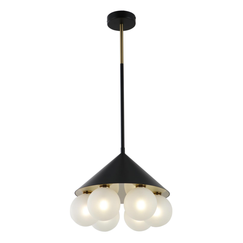2025. aasta Milano Euroluce'i valgustuse suundumuse praktikuna on Strong Lightingu professionaalne disainimeeskond infundeerinud geomeetrilise kontseptsiooni sellesse G9 pirni 6-valgust minimalistliku geomeetrilise ripatsilampi. Kooniline metalli alus moodustatakse laserlõiketehnoloogia abil ja seda töödeldakse nii matt musta pulberkatte kui ka messingist, mis tutvustab tasakaalu tööstusliku esteetika ja luksuse puudutusega. Kuus jäätunud klaasist sfääri, mis on riputatud iga funktsiooni kohal, täpselt söövitatud sooned. Kui 5W G9 soe valgus läbib 8mm paksust klaasist, loob see eristuva valguse ja varju kihi.