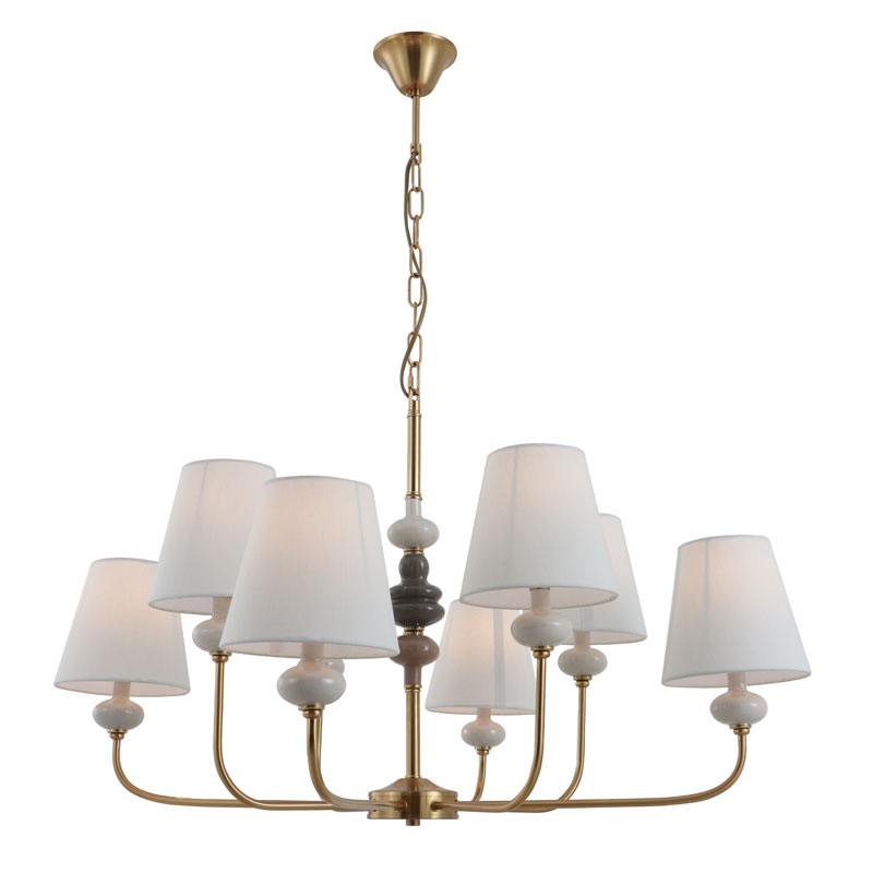 Selle Ceramic Classic 8 valgusti messingist lühtri puhul on lambivarju allosas keraamika kaunistatud, et olla toeks ja kaunistuseks. Lambi kesksammas on samuti sisustatud kolme erineva suuruse ja värviga keraamikaga. See rikastab Ceramic Classic 8-valgusega messingist lühtri keskosa ning väldib selle liigset lihtsat ja monotoonset muutumist. Seetõttu on see väga hästi müüdav.